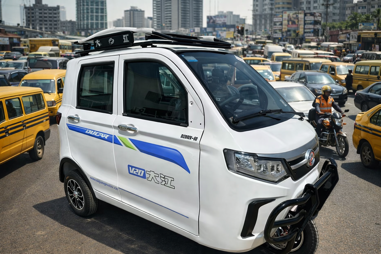 Equipped with air conditioning, four electric windows, seatbelts, reverse camera, and integrated sound system, the Ducar V20 AC offers superior comfort and convenience. Perfect for professionals who want efficiency without compromising on modern features.